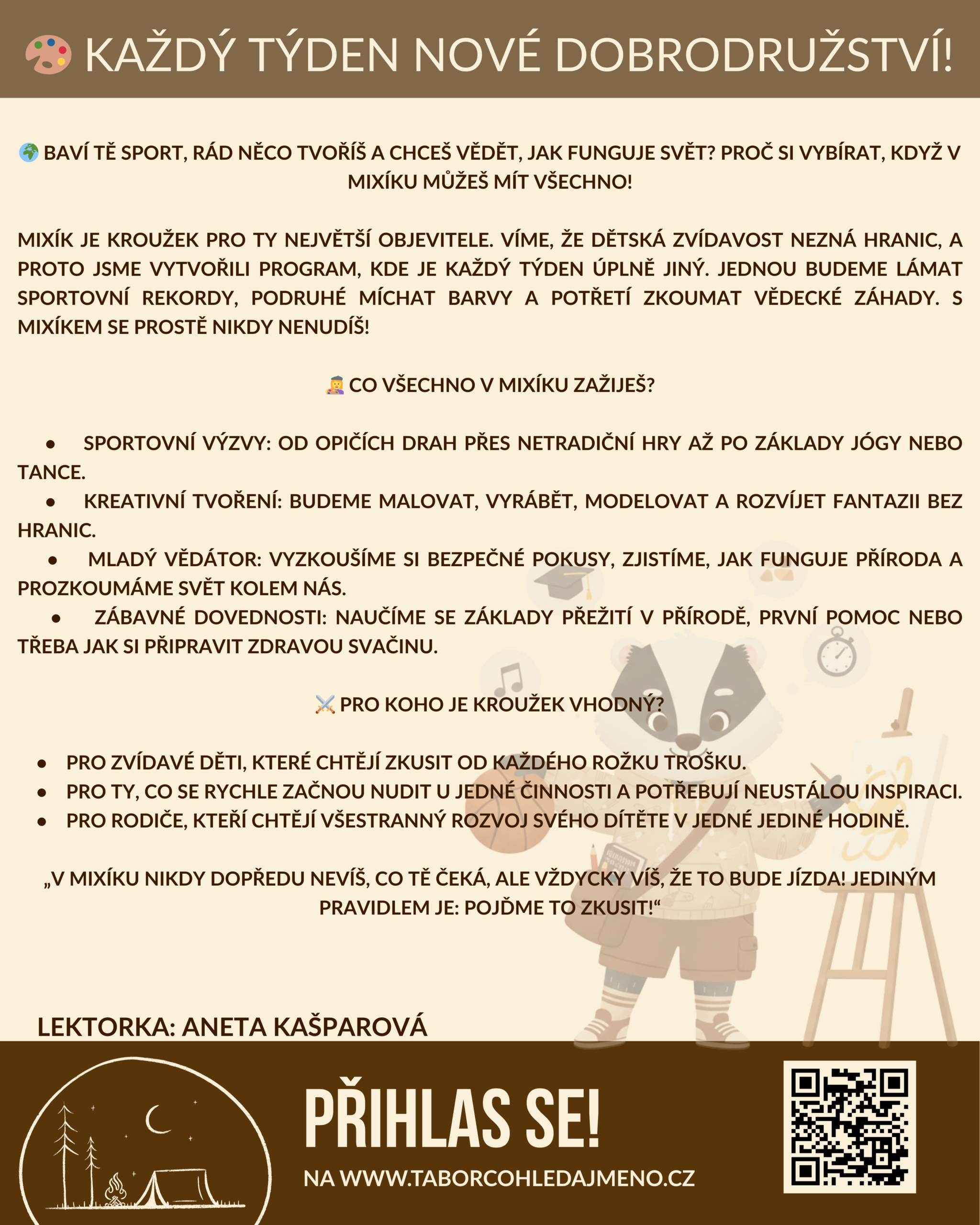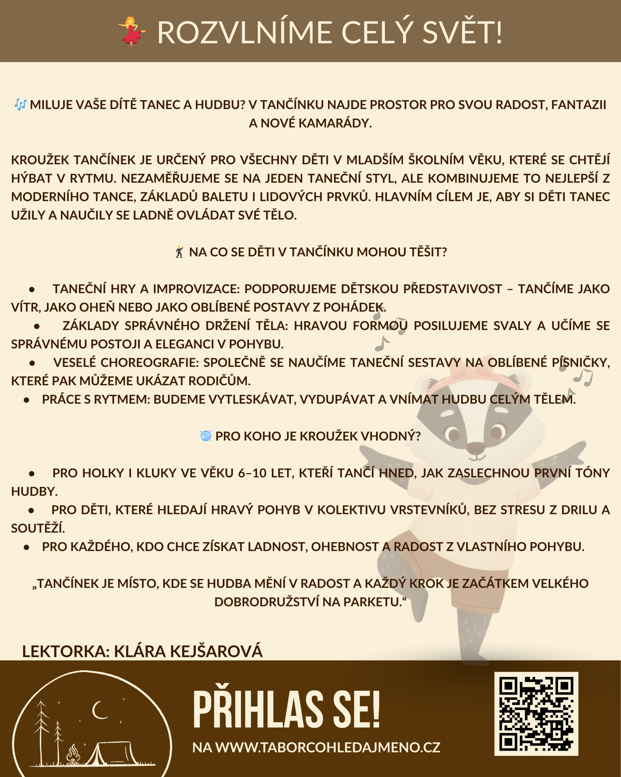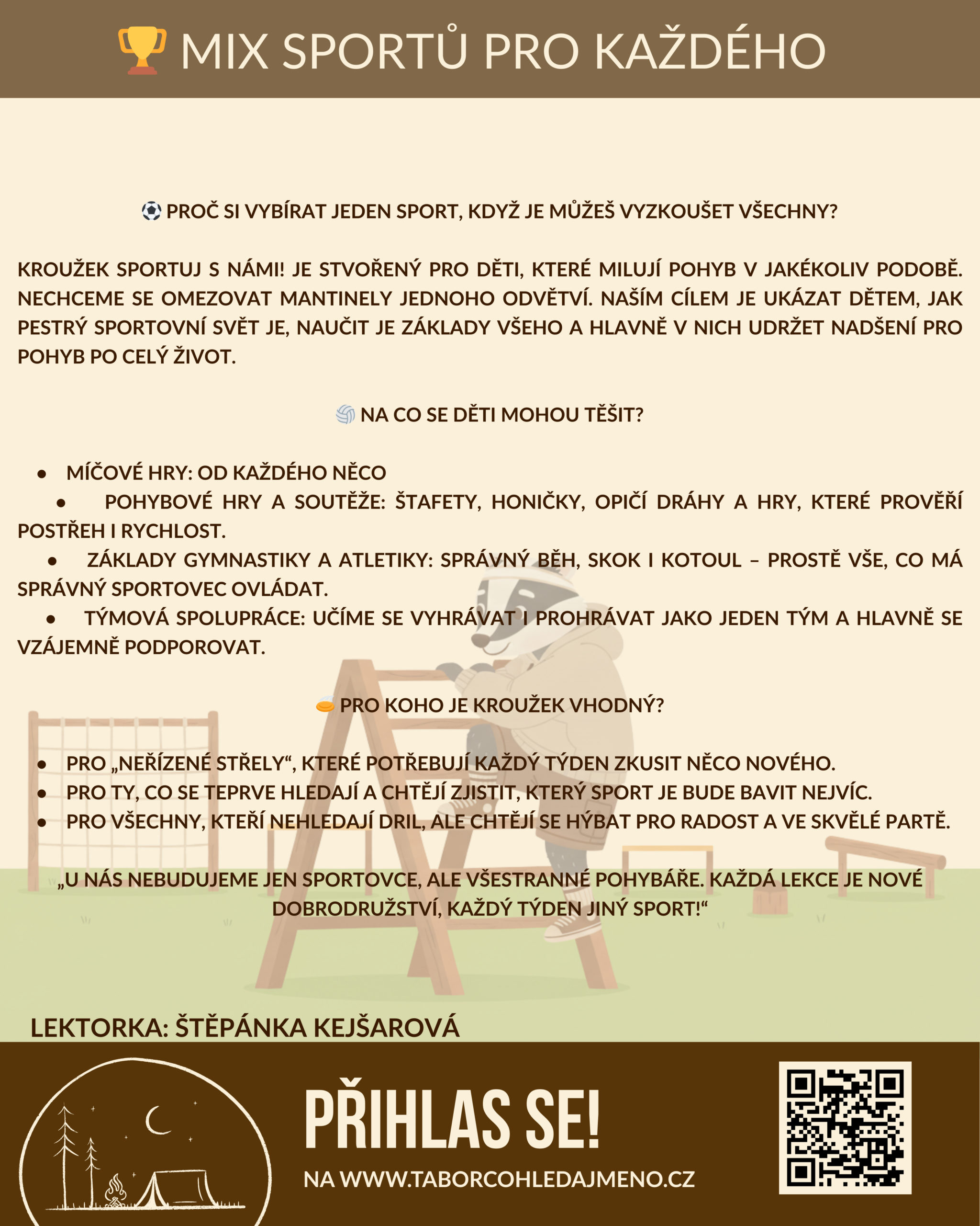 Pořádáme letní pobytový tábor pro děti od 7 do 15 let, ze kterého si odvezete nezapomenutelné zážitky.