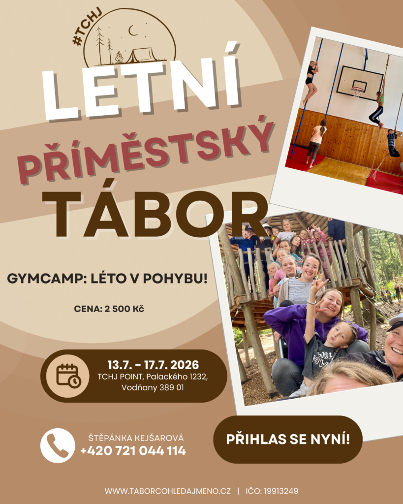 Na našem gymnastickém táboře na Tebe čekají nejrůznější hry, protahovací výzvy a trénink základních i pokročilých prvků, a to nejen v tělocvičně, ale i venku.