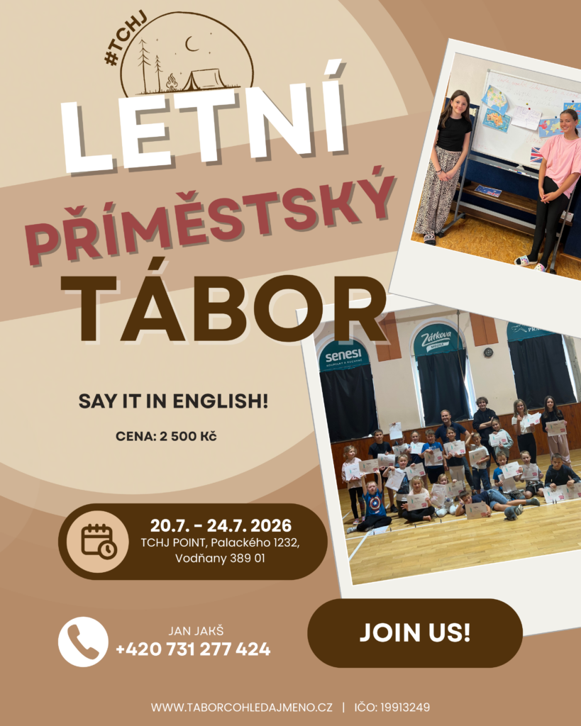 Na našem anglickém táboře na Tebe čekají interaktivní hry, písničky a zábavné projekty, díky kterým pro Tebe angličtina přestane být cizím jazykem.